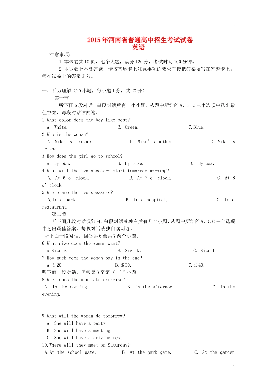 河南省2015年中考英语真题试题(含答案).doc_第1页