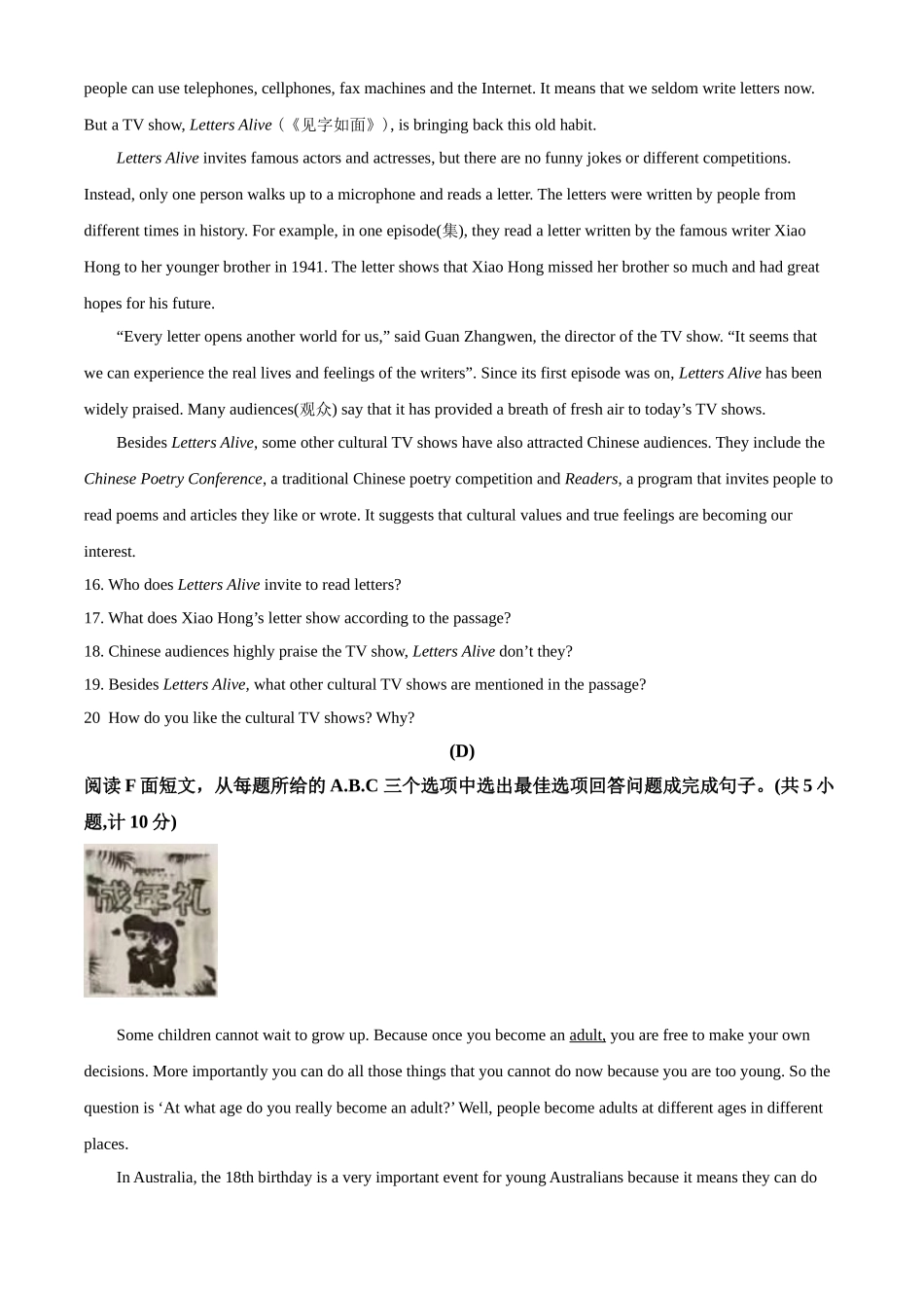 湖南省衡阳市2021年中考英语试题(原卷版)考生注意:1.本试卷分试题卷和答题卡两部分。2.全部答案必须按要求写在答题卡中对应题号的方格里。要求书写工整、清晰、规范,卷面整洁。3.选择题最符合题意的答案只有1...