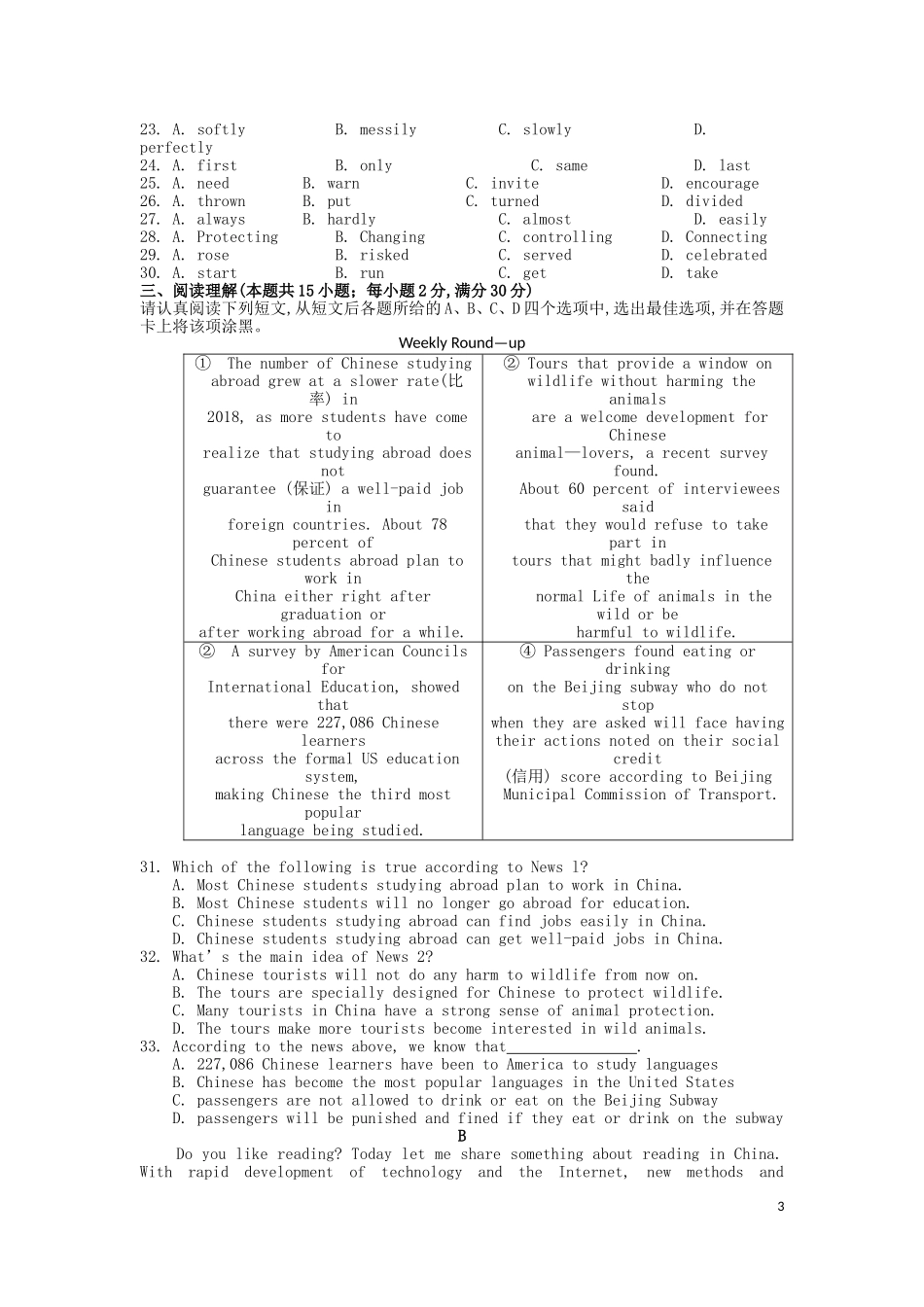 江苏省南通市2019年中考英语真题试题.doc_第3页
