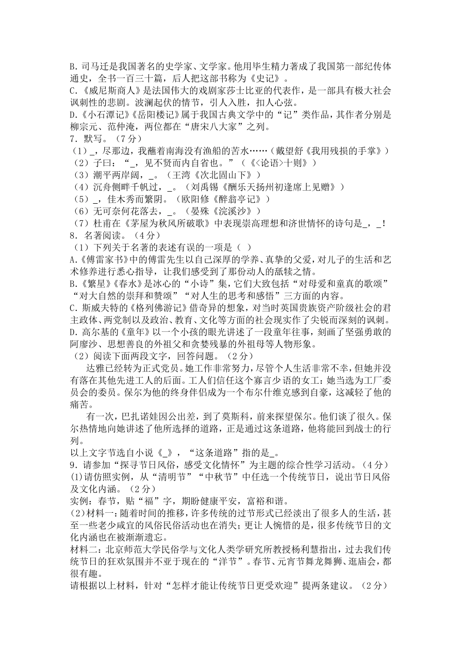 2015年山东省滨州市初中学生学业水平考试语文试题2015-07-18李传鹏xingmenglixingmengli2015年山东省滨州市初中学生学业水平考试语文试题一、积累与运用(共27分)1.下列词语中加点字的读音完全正确的一项是()...
