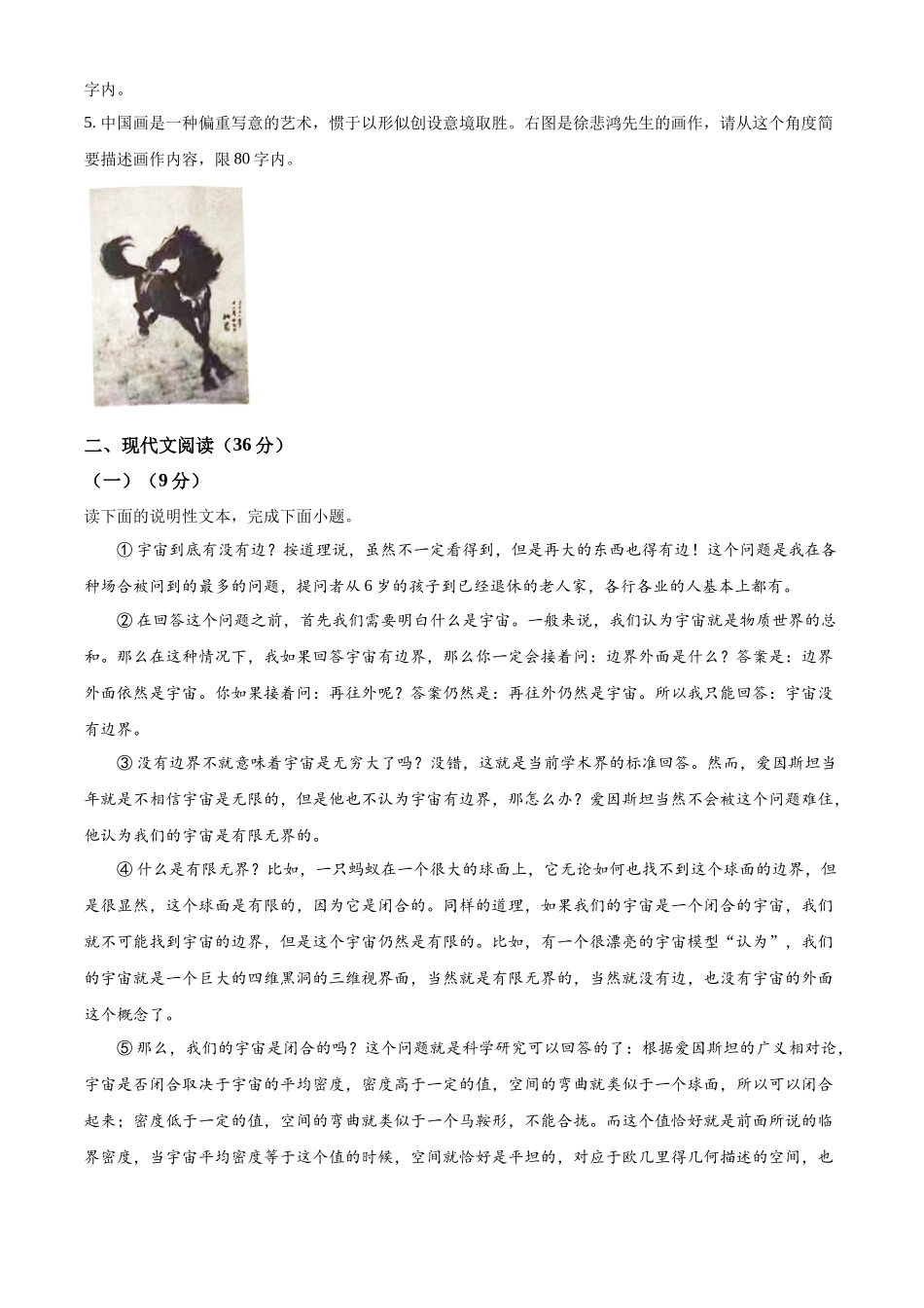 宜宾市2022年初中学业水平考试暨高中阶段学校招生考试语文(考试时间:120分钟;全卷满分:150分)注意事项:1.答题前、务必将自己的姓名、座位号、准考证号填写在答题卡指定的位置并将答题卡背面座位号对应标号...