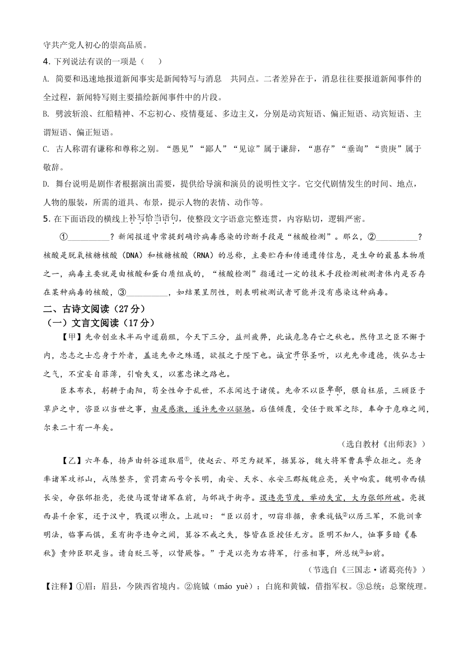 四川省达州市2021年中考语文试题(原卷版).doc