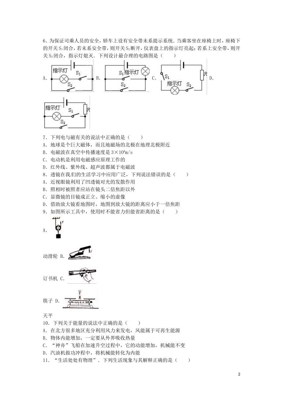 内蒙古通辽市2016年中考物理真题试题(含解析).DOC_第2页