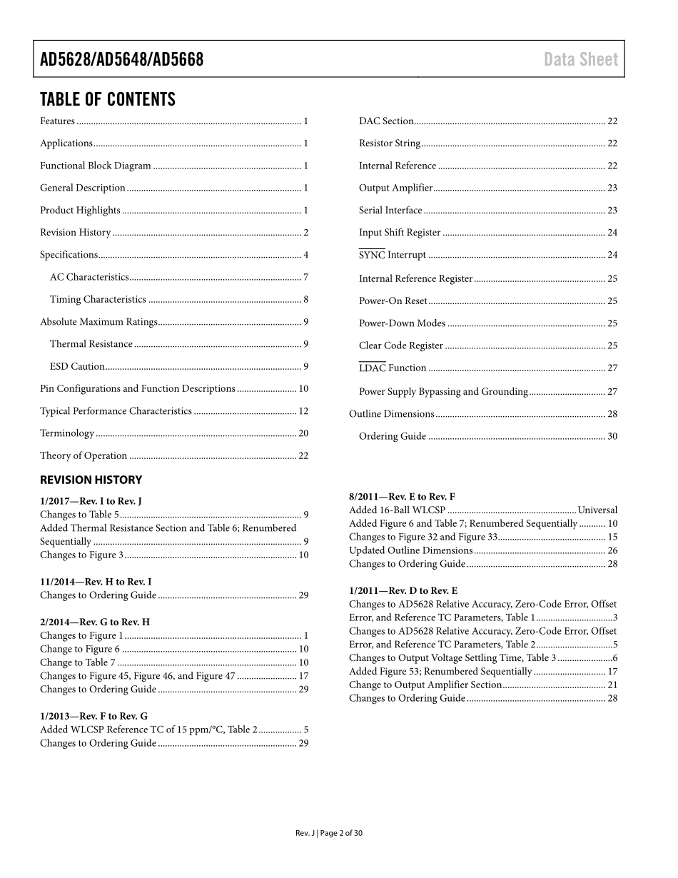 Octal,12-/14-/16-Bit,SPIVoltageOutputdenseDACwith5ppm/°C,On-ChipReferenceDataSheetAD5628/AD5648/AD5668Rev.JDocumentFeedbackInformationfurnishedbyAnalogDevicesisbelievedtobeaccurateandreliable.Howe...