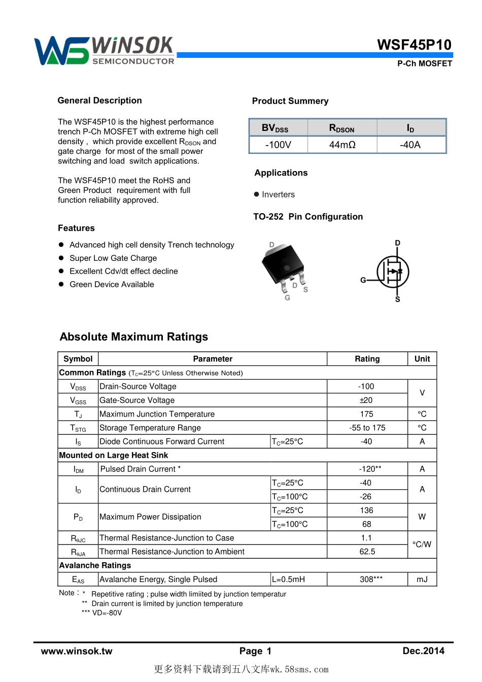 IC封装资料_三极管_WSF45P10.pdf_第1页