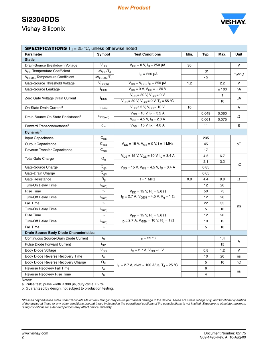 VishaySiliconixSi2304DDSNewProductDocumentNumber:65175S09-1496-Rev.A,10-Aug-09www.vishay.com1N-Channel30-V(D-S)MOSFETFEATURES•Halogen-freeAccordingtoIEC61249-2-21Definition•TrenchFET®PowerMOSFET...
