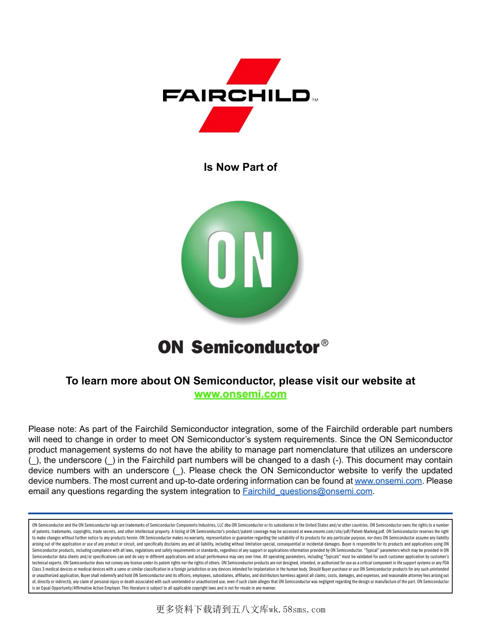 TolearnmoreaboutONSemiconductor,pleasevisitourwebsiteatwww.onsemi.comPleasenote:AspartoftheFairchildSemiconductorintegration,someoftheFairchildorderablepartnumberswillneedtochangeinordertomeetONSem...