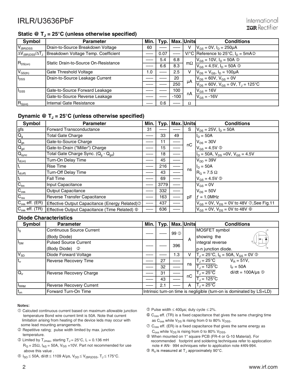 IC封装资料_三极管_IRLR3636TRPBF.pdf_第2页