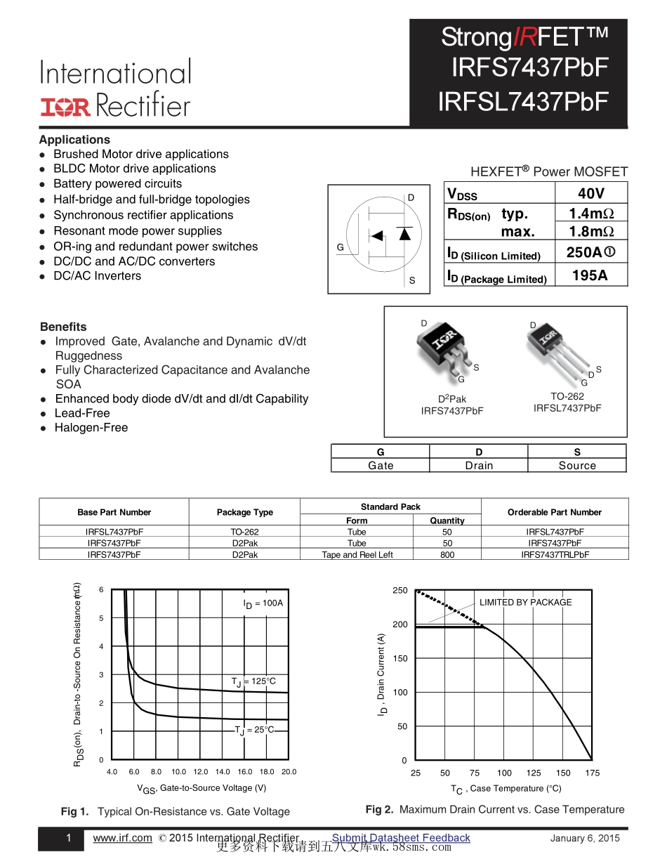 IC封装资料_三极管_IRFS7437TRLPBF.pdf_第1页