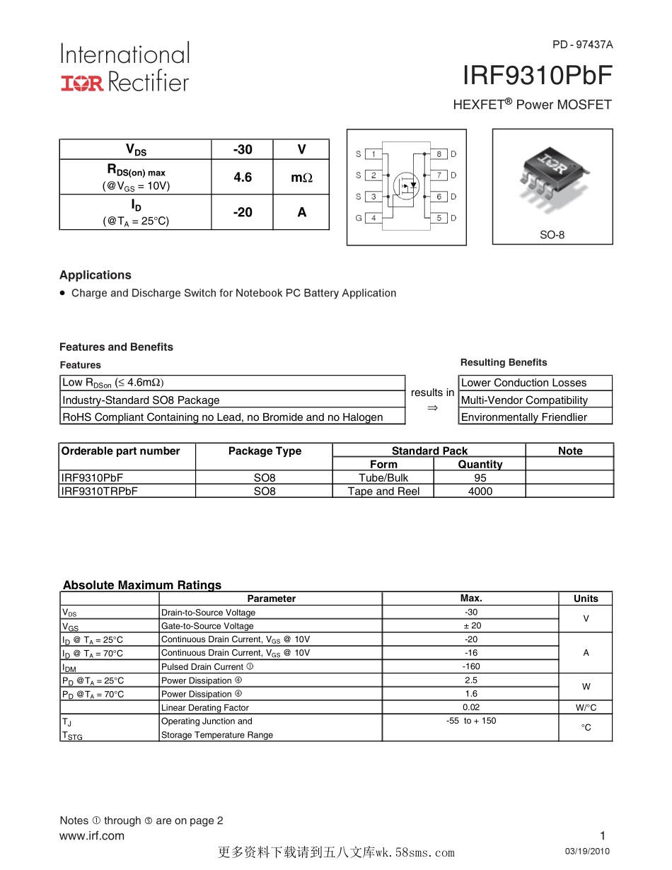 IC封装资料_三极管_IRF9310TRPBF.pdf_第1页