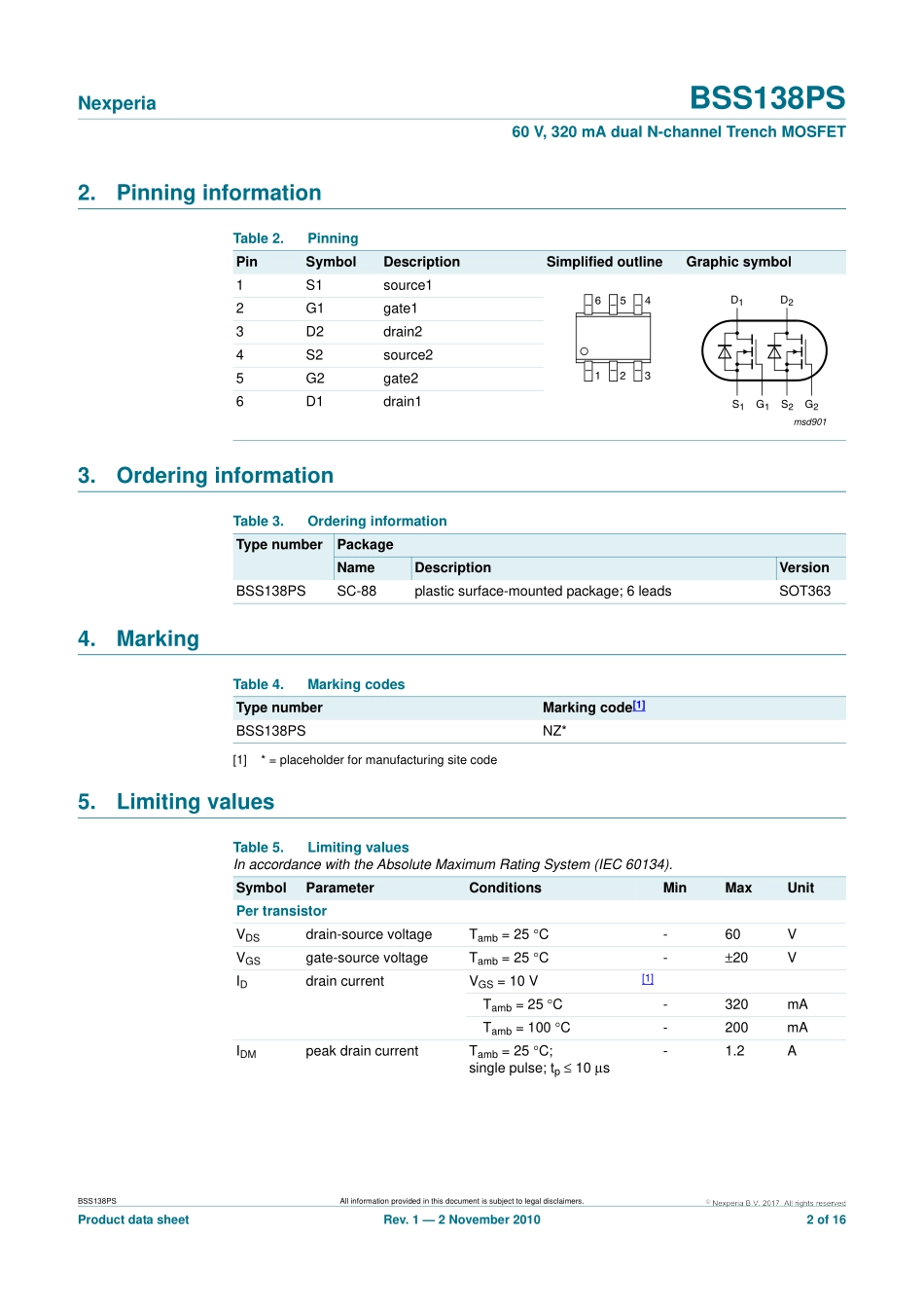 IC封装资料_三极管_BSS138PS_115.pdf_第2页