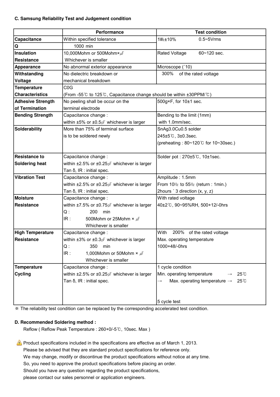SPECIFICATION(Referencesheet)·Supplier:Samsungelectro-mechanics·SamsungP/N:·Product:Multi-layerCeramicCapacitor·Description:CAP,1㎋,50V,±5%,C0G,0603CL10C102JB8NNNL①②③④⑤⑥⑦⑧⑨⑩⑪①Serie...