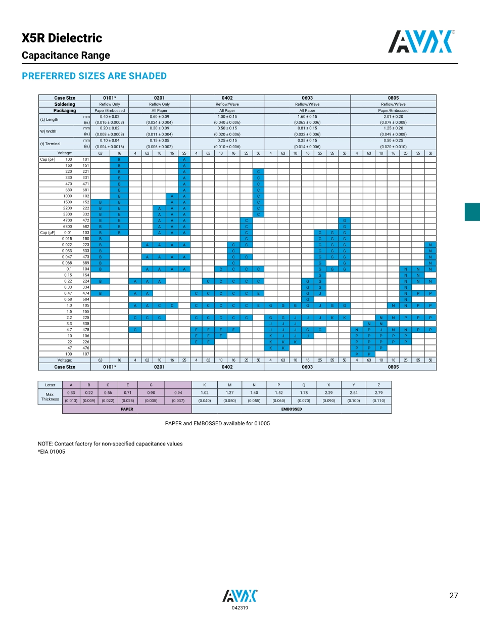 25GeneralSpecificationsPARTNUMBER(SEEPAGE4FORCOMPLETEPARTNUMBEREXPLANATION)TYPICALELECTRICALCHARACTERISTICS12104DMA2AT107Size(L”xW”)0101**0201040206030805120612101812DielectricD=X5RCapacitanceTol...
