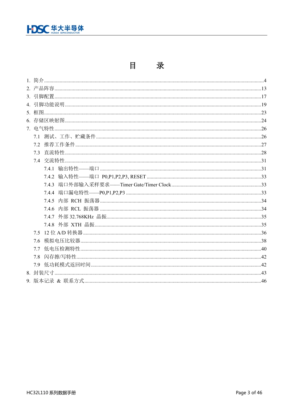 HC32L110系列32位ARM®Cortex®-M0+微控制器HC32L110C6UA/HC32L110C6PA/HC32L110C4UAHC32L110C4PA/HC32L110B6PA/HC32L110B4PA数据手册更多资料下载请到五八文库wk.58sms.comHC32L110系列数据手册Page2of46声明➢...