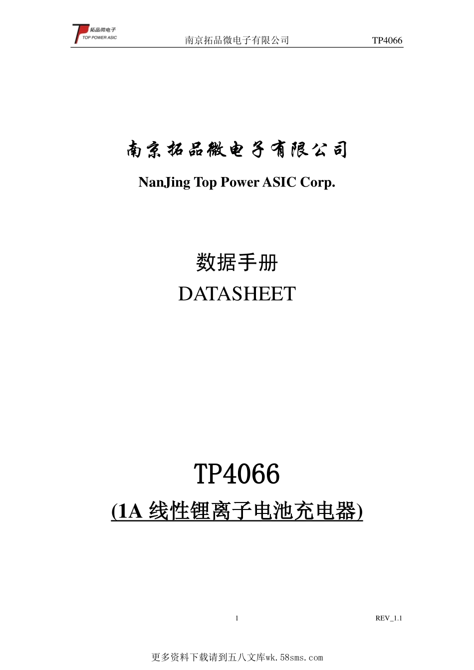 南京拓品微电子有限公司TP40661REV_1.1南京拓品微电子有限公司NanJingTopPowerASICCorp.数据手册DATASHEETTP4066(1A线性锂离子电池充电器)更多资料下载请到五八文库wk.58sms.com南京拓品微电子有限公司TP40662REV...