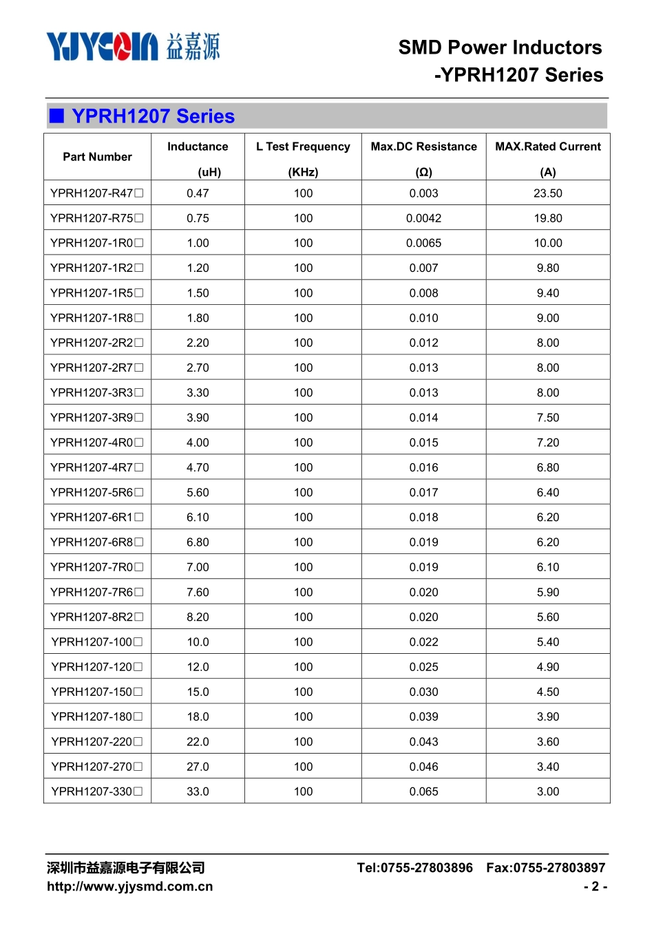 IC封装资料_电感_YPRH1207-330M.pdf_第2页