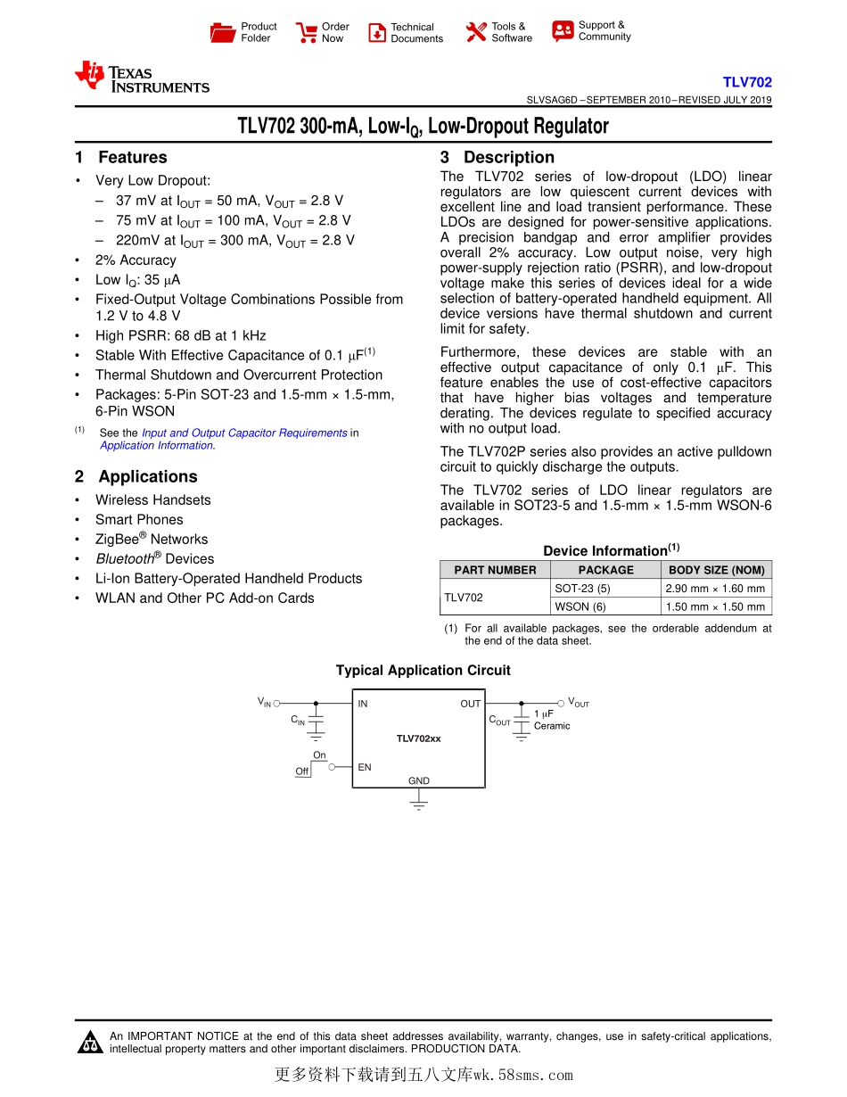 TLV702xxGNDENINOUTVINVOUTOnOffCINCOUT1FCeramic�ProductFolderOrderNowTechnicalDocumentsTools&SoftwareSupport&CommunityAnIMPORTANTNOTICEattheendofthisdatasheetaddressesavailability,warranty,changes,...