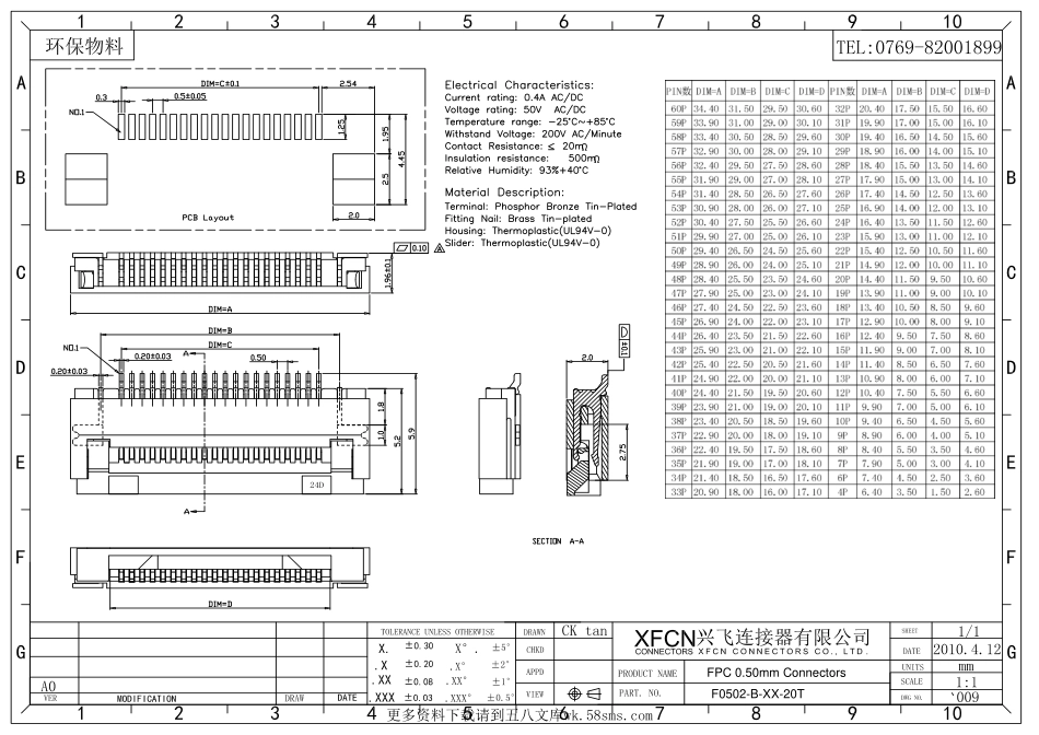 FPC0.50mmConnectorsF0502-B-XX-20T≥24D更多资料下载请到五八文库wk.58sms.com