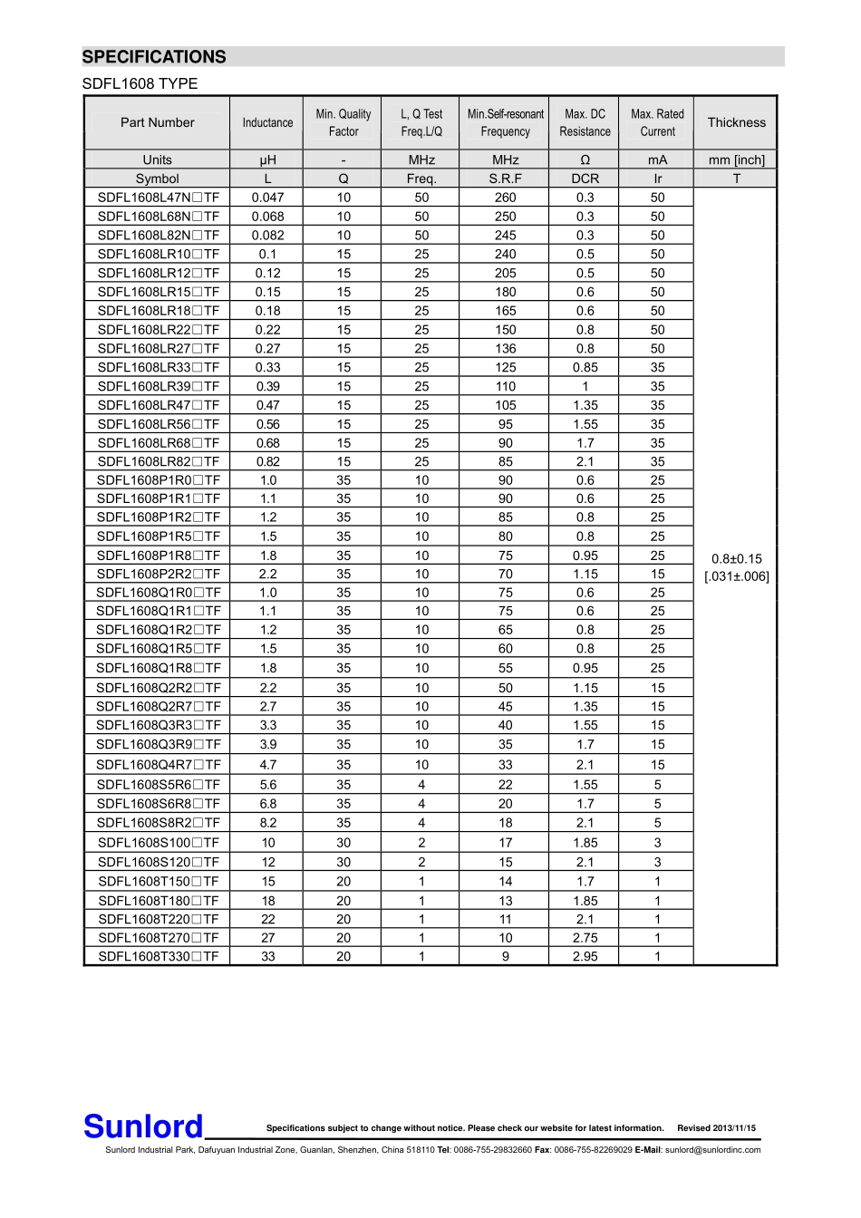 Specificationssubjecttochangewithoutnotice.Pleasecheckourwebsiteforlatestinformation.Revised2013/11/15SunlordIndustrialPark,DafuyuanIndustrialZone,Guanlan,Shenzhen,China518110Tel:0086-755-29832660F...
