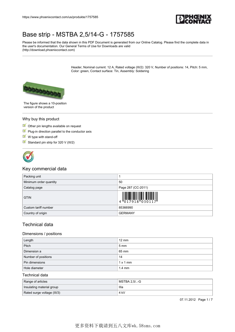 https://www.phoenixcontact.com/us/produkte/175758507.11.2012Page1/7Basestrip-MSTBA2,5/14-G-1757585PleasebeinformedthatthedatashowninthisPDFDocumentisgeneratedfromourOnlineCatalog.Pleasefindthecompl...