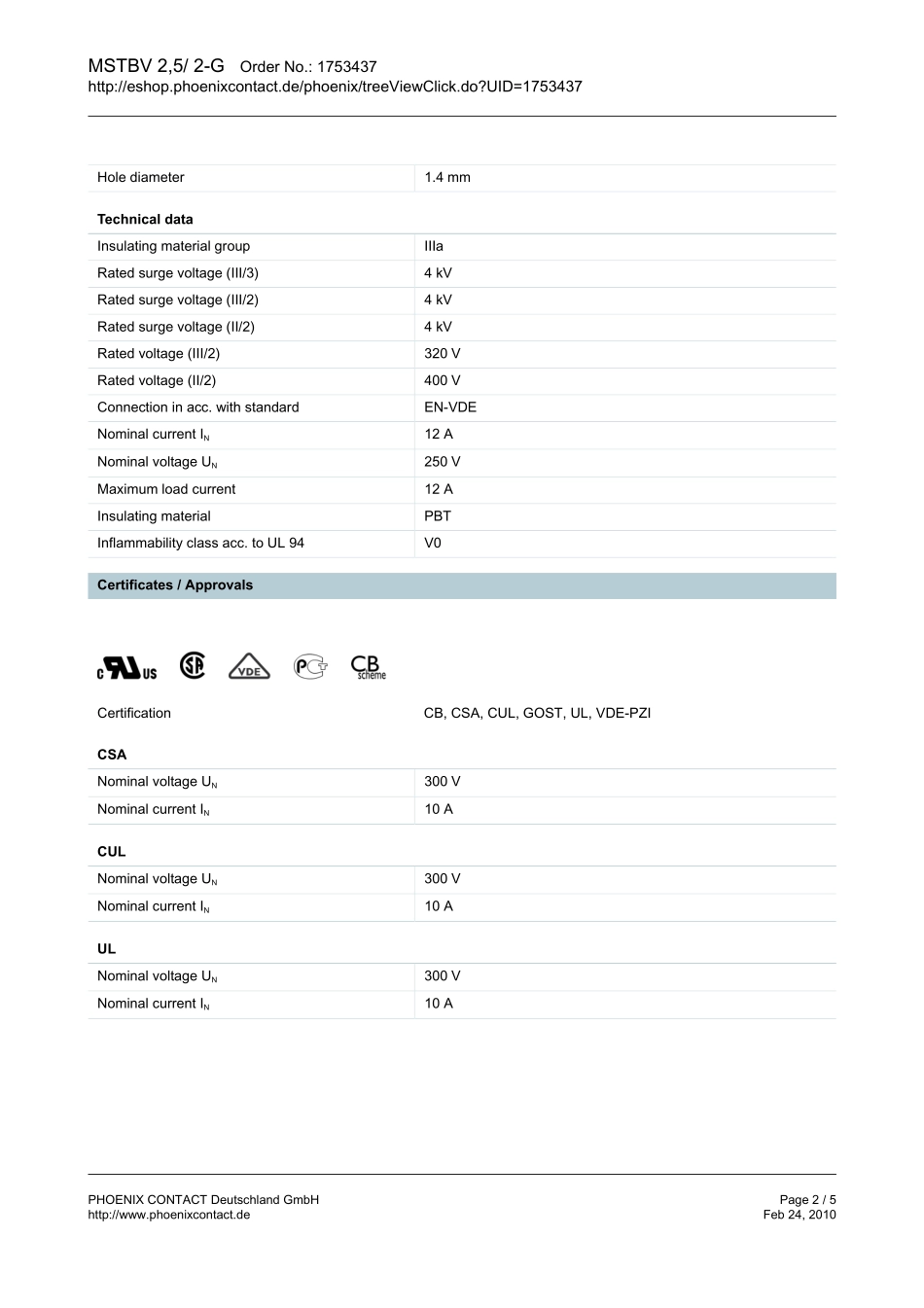 PHOENIXCONTACTDeutschlandGmbHPage1/5http://www.phoenixcontact.deFeb24,2010ExtractfromtheonlinecatalogMSTBV2,5/2-GOrderNo.:1753437Thefigureshowsa10-positionversionoftheproducthttp://eshop.phoenixcon...