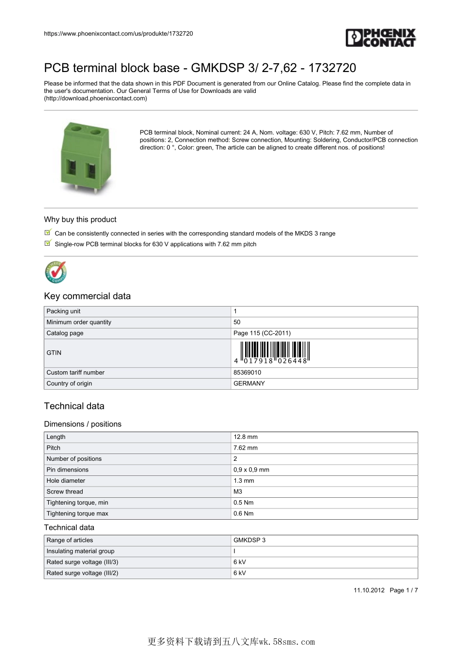 https://www.phoenixcontact.com/us/produkte/173272011.10.2012Page1/7PCBterminalblockbase-GMKDSP3/2-7,62-1732720PleasebeinformedthatthedatashowninthisPDFDocumentisgeneratedfromourOnlineCatalog.Please...
