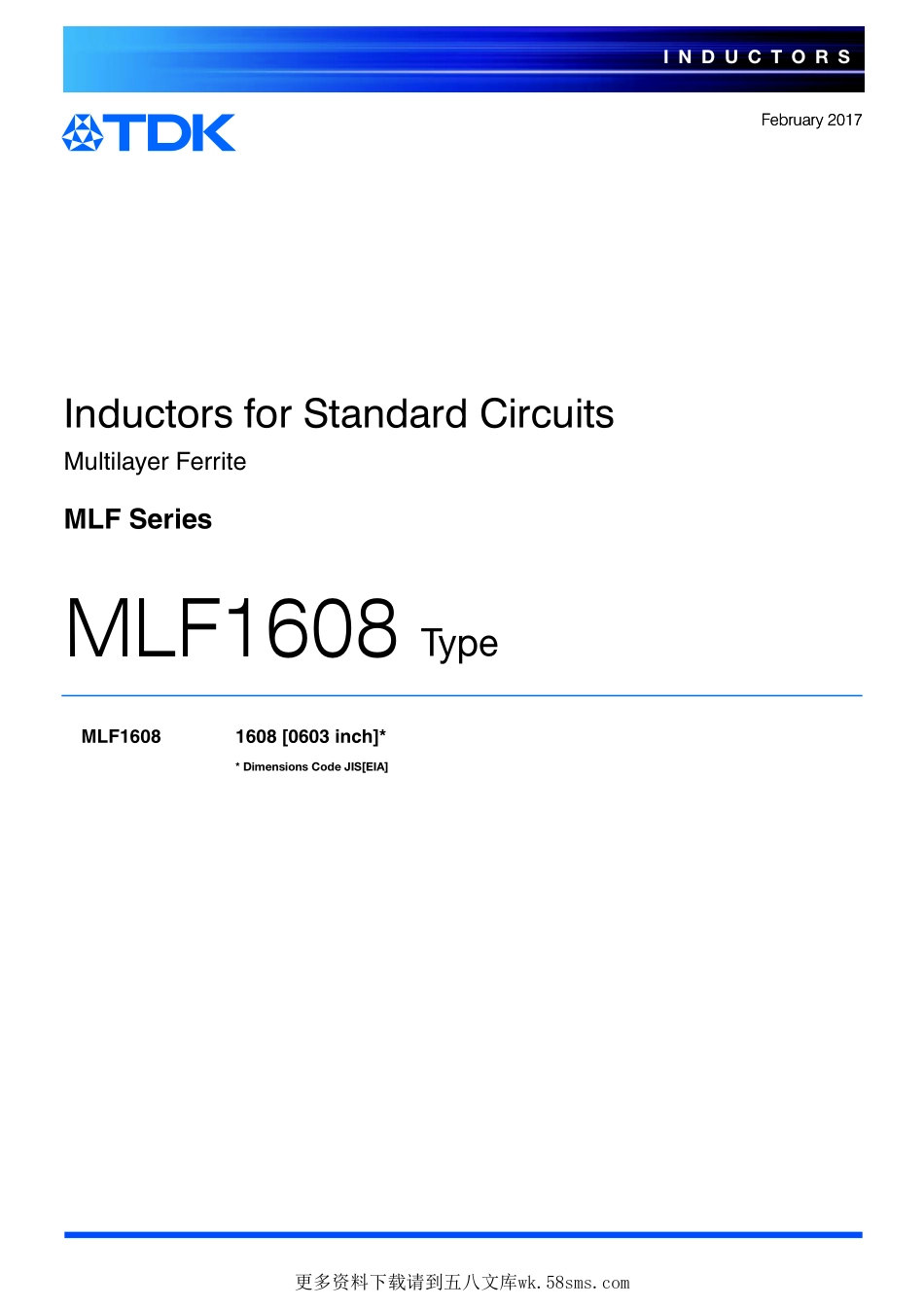 February2017INDUCTORSFebruary2017MultilayerFerriteMLF16081608[0603inch]**DimensionsCodeJIS[EIA]InductorsforStandardCircuitsMLF1608TypeMLFSeries更多资料下载请到五八文库wk.58sms.com(2/11)20170205/ind...