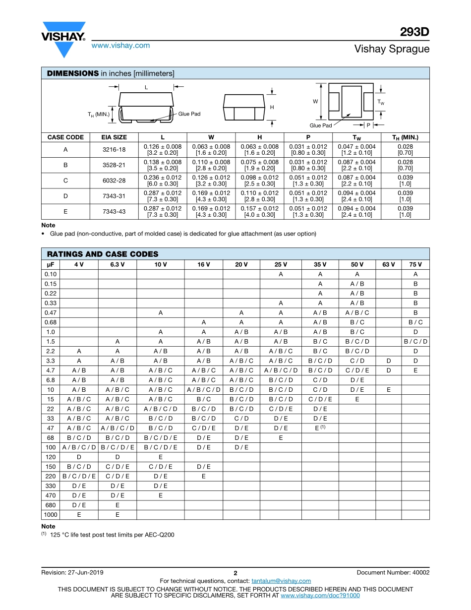 293Dwww.vishay.comVishaySpragueRevision:27-Jun-20191DocumentNumber:40002Fortechnicalquestions,contact:tantalum@vishay.comTHISDOCUMENTISSUBJECTTOCHANGEWITHOUTNOTICE.THEPRODUCTSDESCRIBEDHEREINANDTHIS...