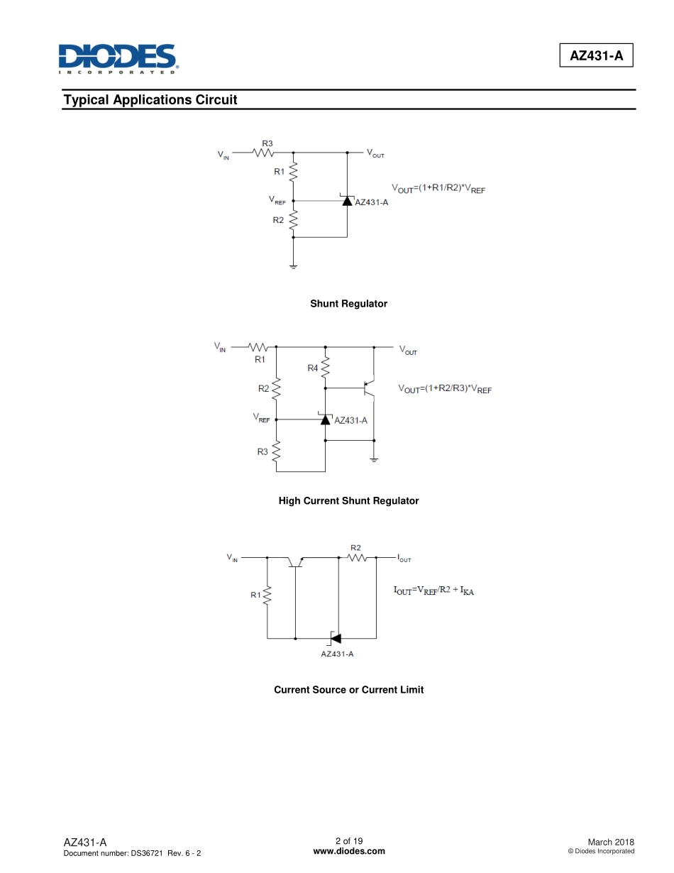 AZ431-ADocumentnumber:DS36721Rev.6-21of19www.diodes.comMarch2018©DiodesIncorporatedAZ431-AADJUSTABLEPRECISIONSHUNTREGULATORSDescriptionTheAZ431-Aisathree-terminaladjustableshuntregulatorwithguaran...
