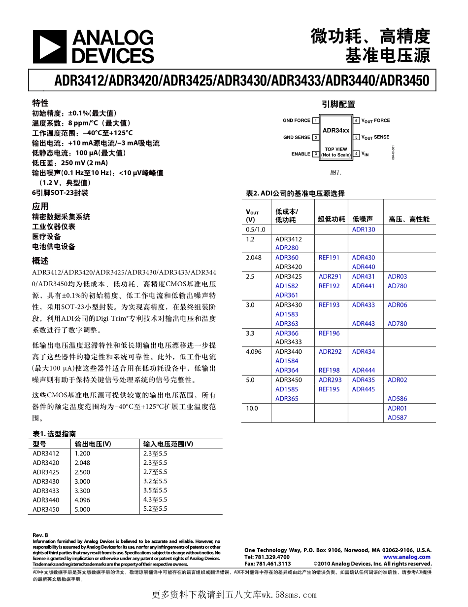 ADR3412/ADR3420/ADR3425/ADR3430/ADR3433/ADR3440/ADR3450Rev.BInformationfurnishedbyAnalogDevicesisbelievedtobeaccurateandreliable.However,noresponsibilityisassumedbyAnalogDevicesforitsuse,norforanyi...