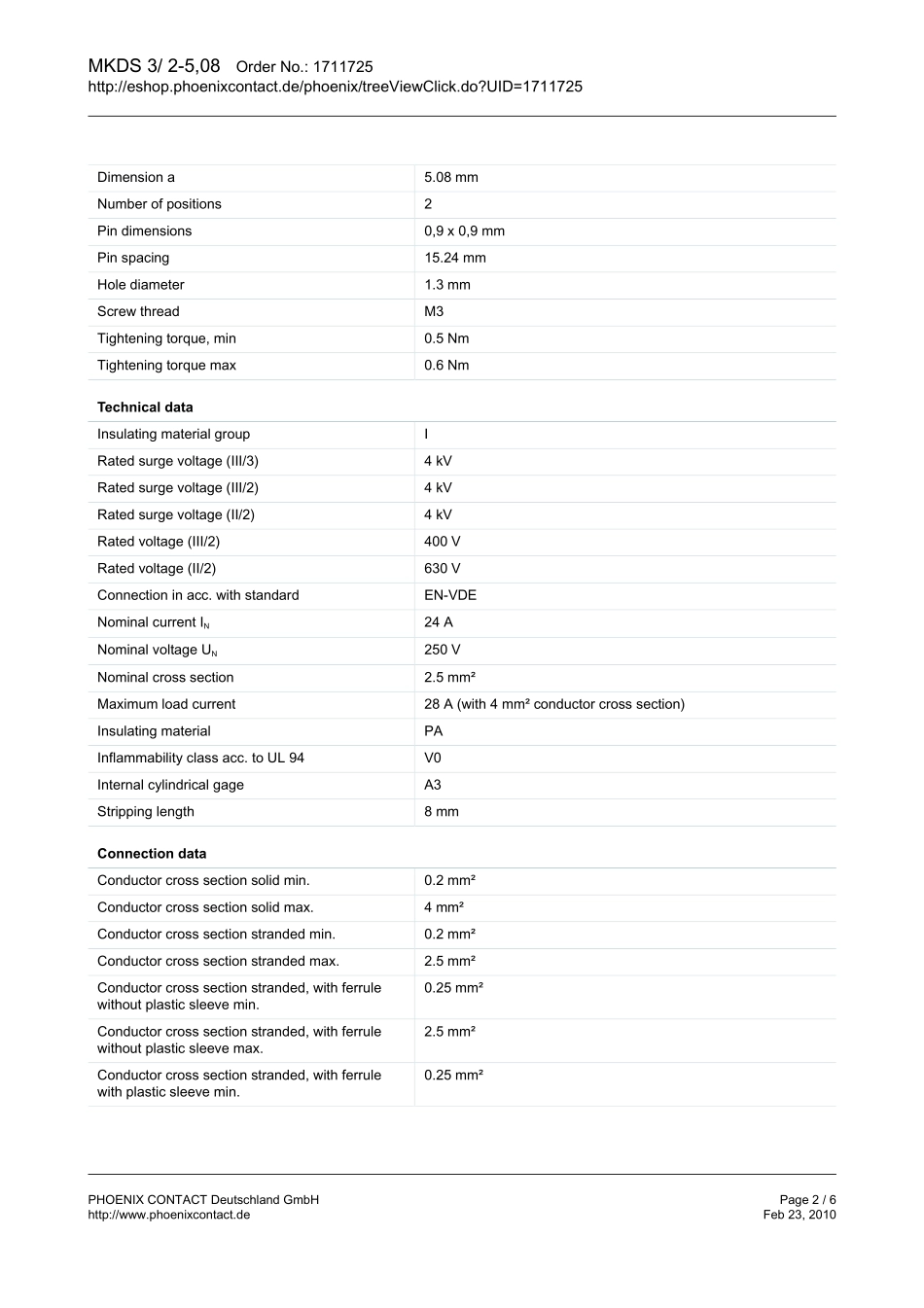 PHOENIXCONTACTDeutschlandGmbHPage1/6http://www.phoenixcontact.deFeb23,2010ExtractfromtheonlinecatalogMKDS3/2-5,08OrderNo.:1711725Theillustrationshowsacombinationasa15-positionversionhttp://eshop.ph...