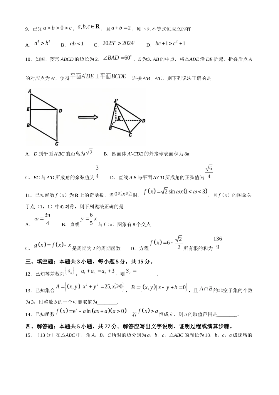 东北三省精准教学2024-2025学年高三上学期12月联考数学试卷.docx_第2页
