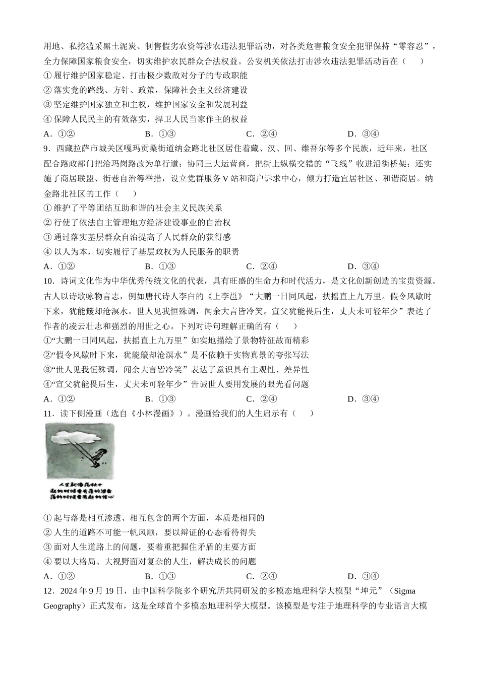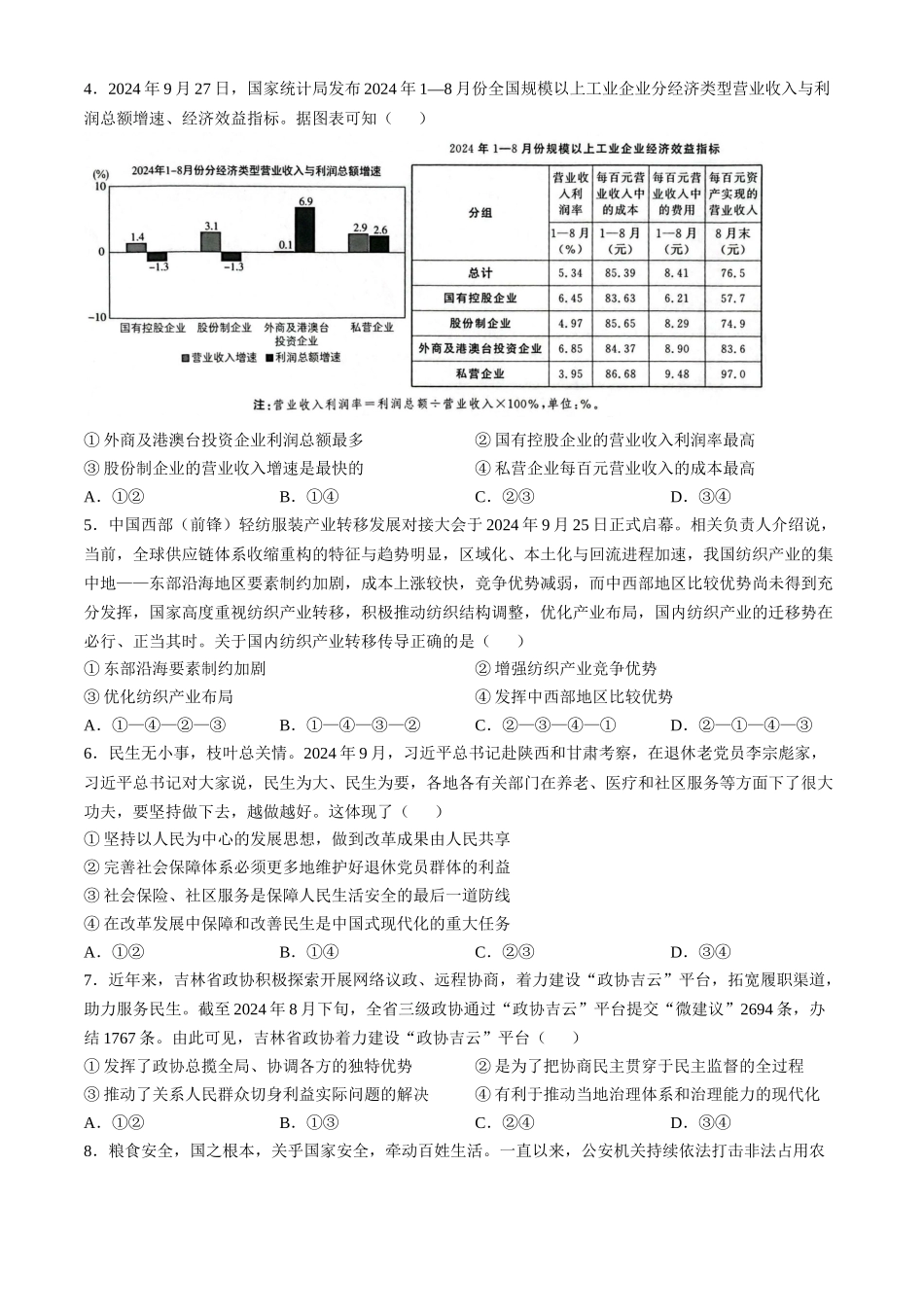 东北三省精准教学2024-2025学年高三上学期12月月考政治试题.docx_第2页