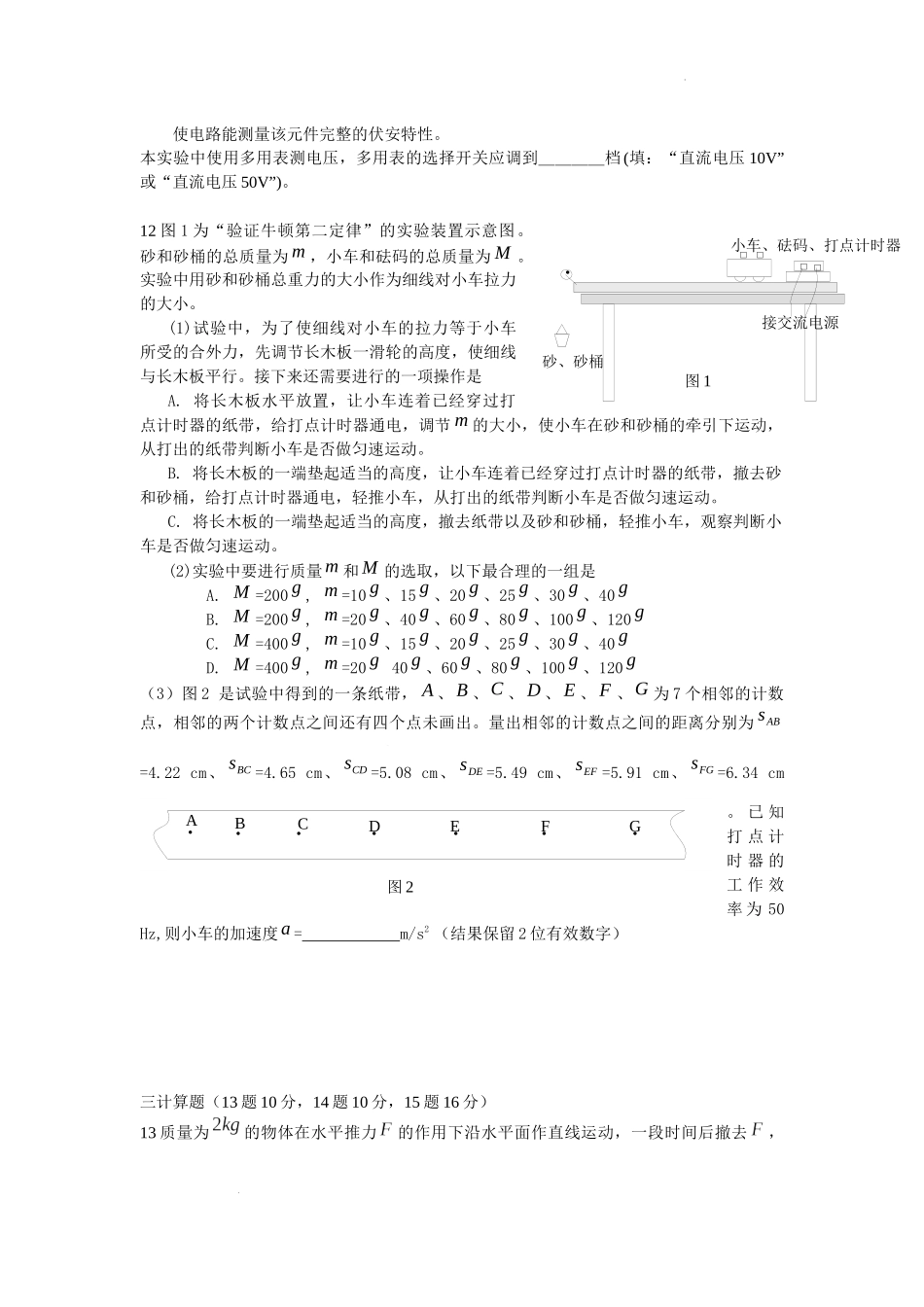 图2-12v0tBv0tAv0tCx0tD图3图5佳市八中2024—2025学年度(上)12月份考试高三物理试题一选择题(1-7为单选题每题4分,8-10为多选题每题6分少选得3分共46分)1图2-12中所示的各图象能正确反映自由落体运动过程的是()...