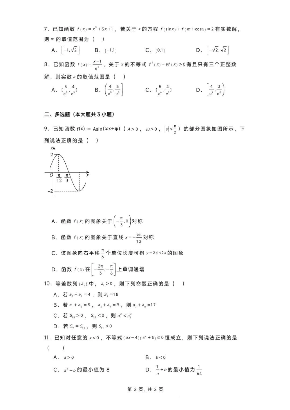 黑龙江省实验中学2024-2025学年高三上学期第三次月考数学(含答案).pdf_第2页