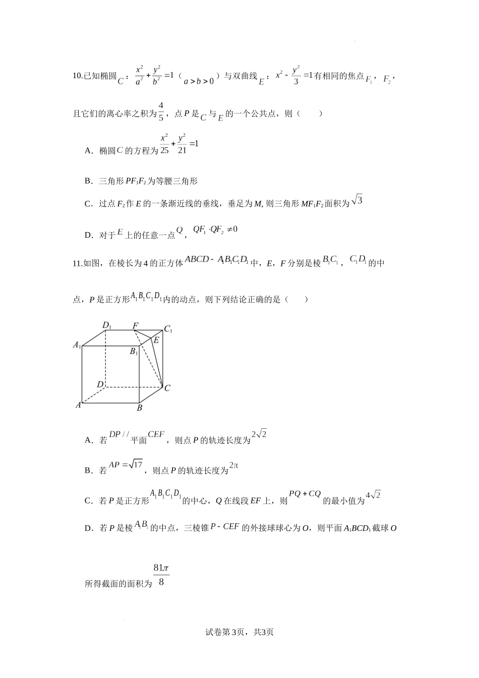 湖南省长沙市周南中学2024-2025学年高三上学期第四阶段模拟考试数学含答案.docx_第3页