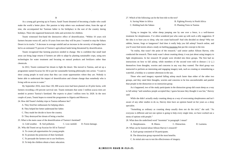 宁夏银川一中2025届高三上学期第四次月考英语含答案.docx_第3页