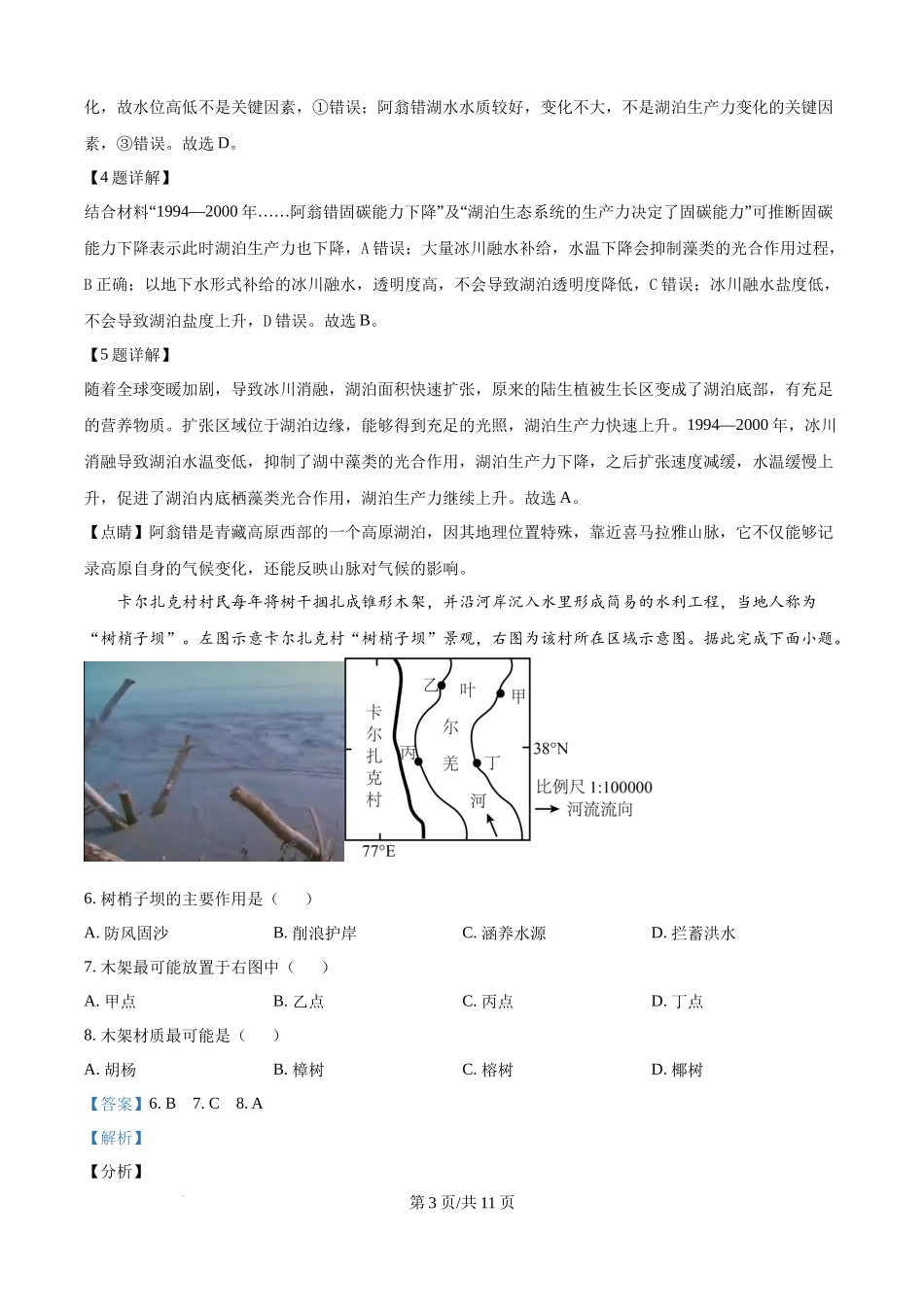 云南省昆明市第三中学2024-2025学年高三上学期11月月考地理(解析版).docx_第3页