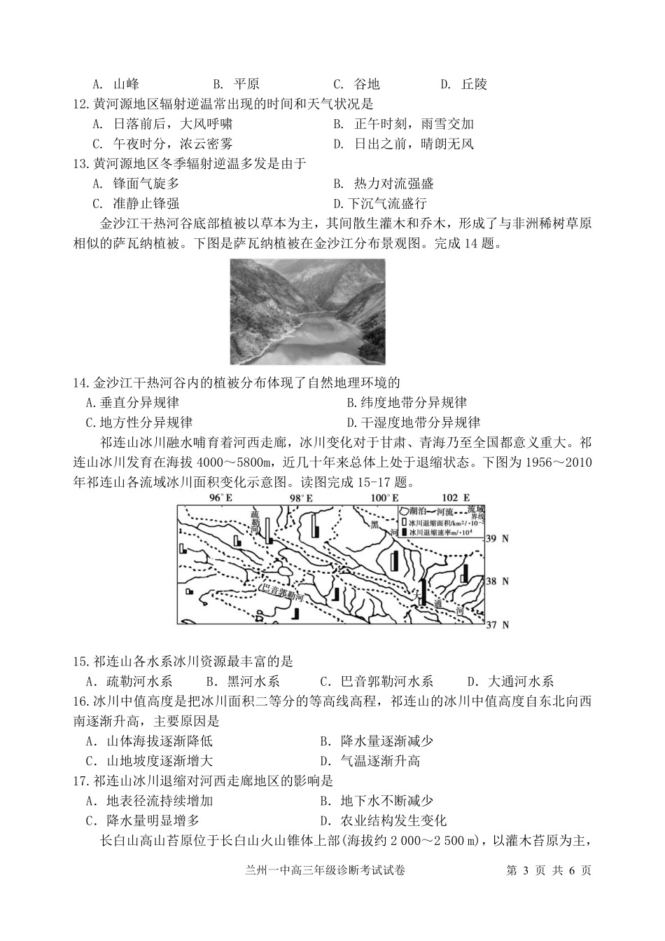 甘肃省兰州第一中学2024-2025学年高三上学期12月月考地理试题.pdf_第3页