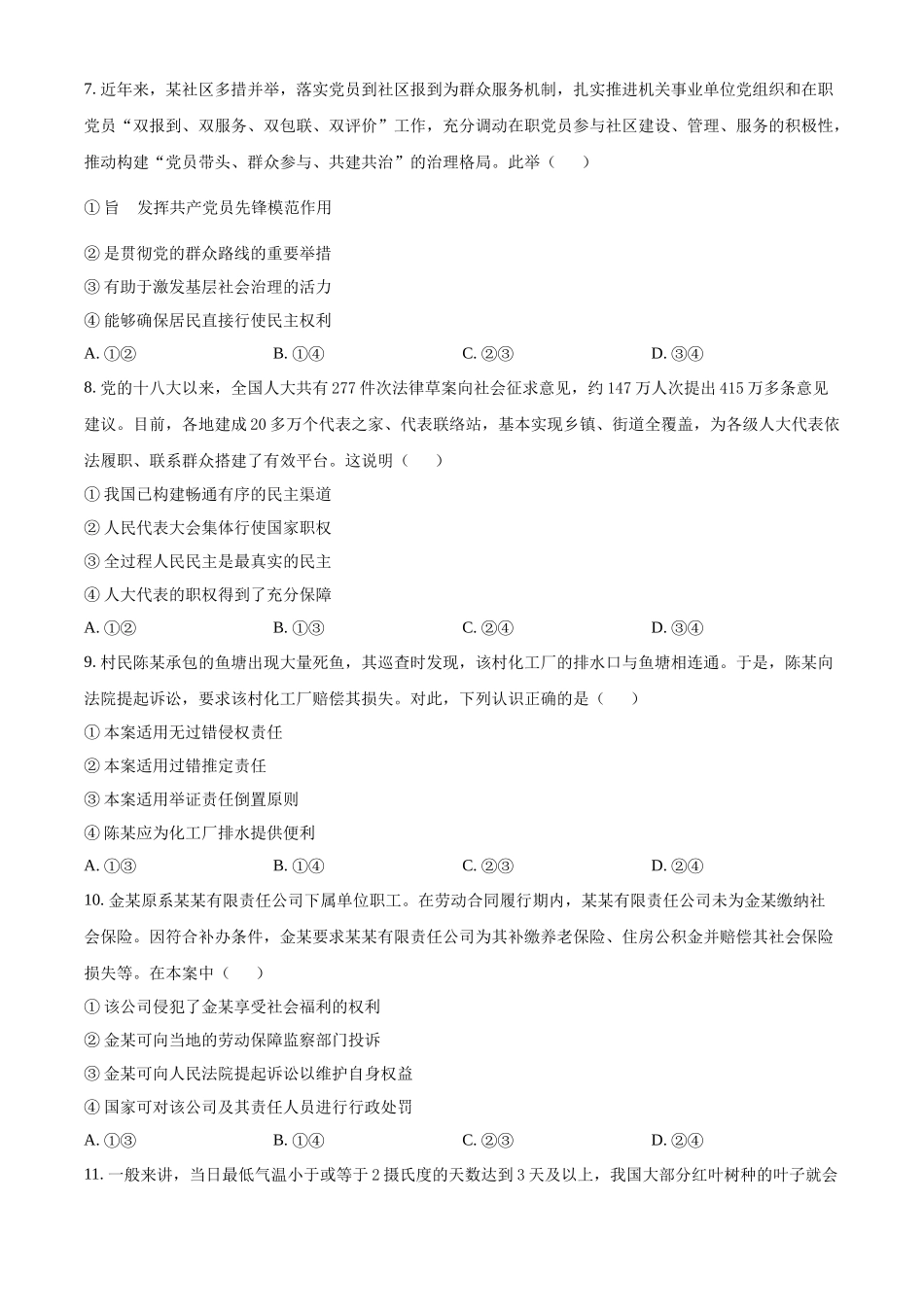 高三思想政治考试本试卷满分100分,考试用时75分钟。注意事项:1.答题前,考生务必将自己的姓名、考生号、考场号、座位号填写在答题卡上。2.回答选择题时,选出每小题答案后,用铅笔把答题卡上对应题目的答案标号...