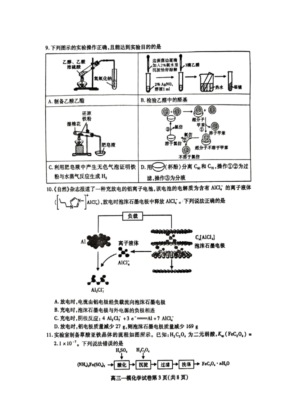 四川省内江市高三上学期第一次模拟考试化学.pdf_第3页