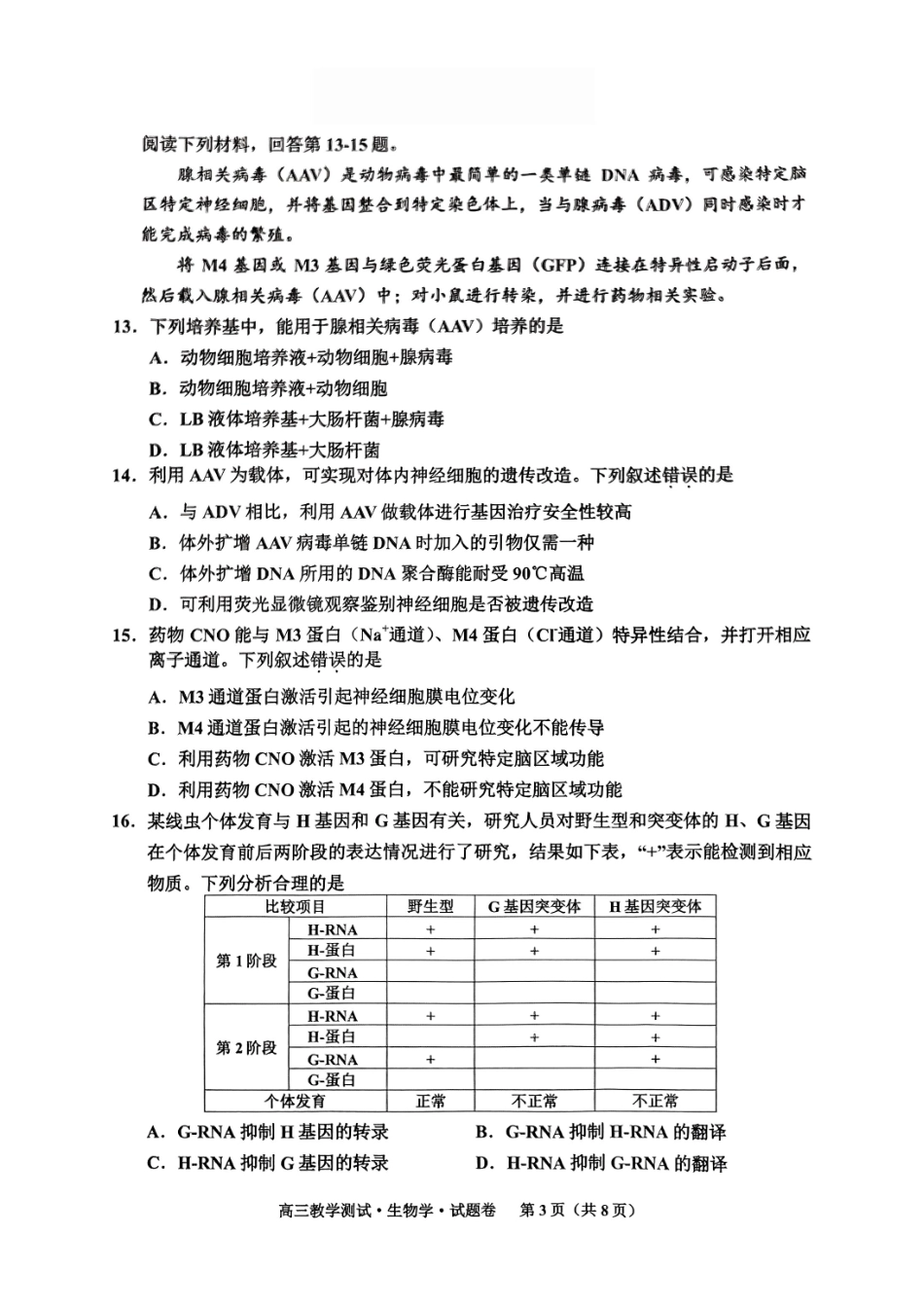 浙江省2025届高三嘉兴一模生物试题.pdf_第3页