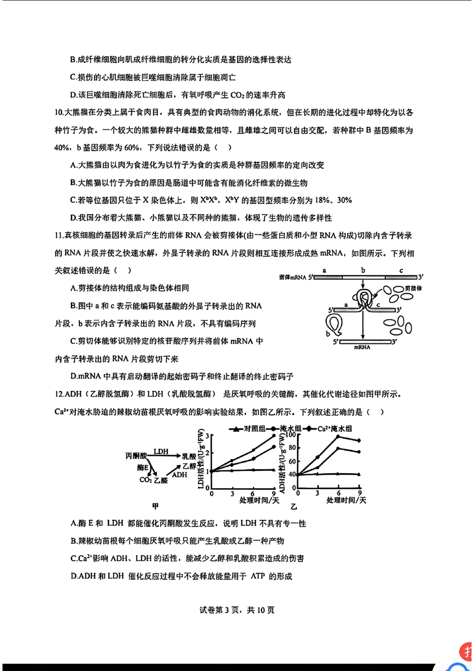 广东省深圳市高级中学2024-2025学年高三上学期第二次诊断考试生物学.pdf_第3页