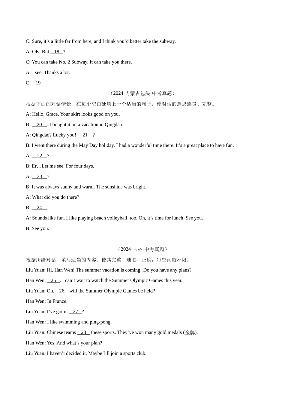 专题28 补全对话 考点2 填空型(第02期)(学生版)-中考英语真题分类汇编(全国通用).docx