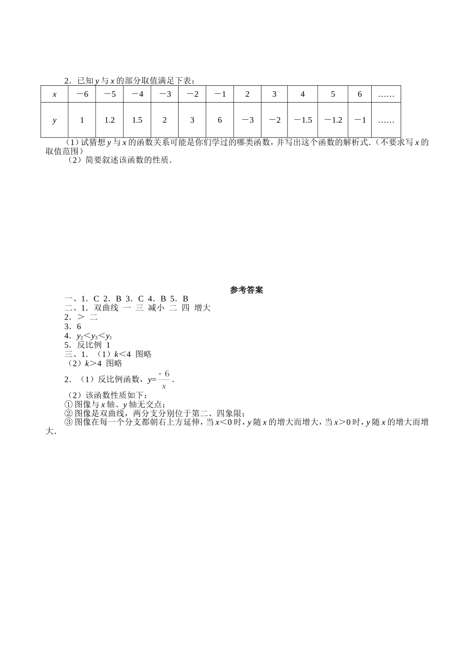 【北师大版九年级课课练】6.2 反比例函数的图象与性质(2).doc_第2页