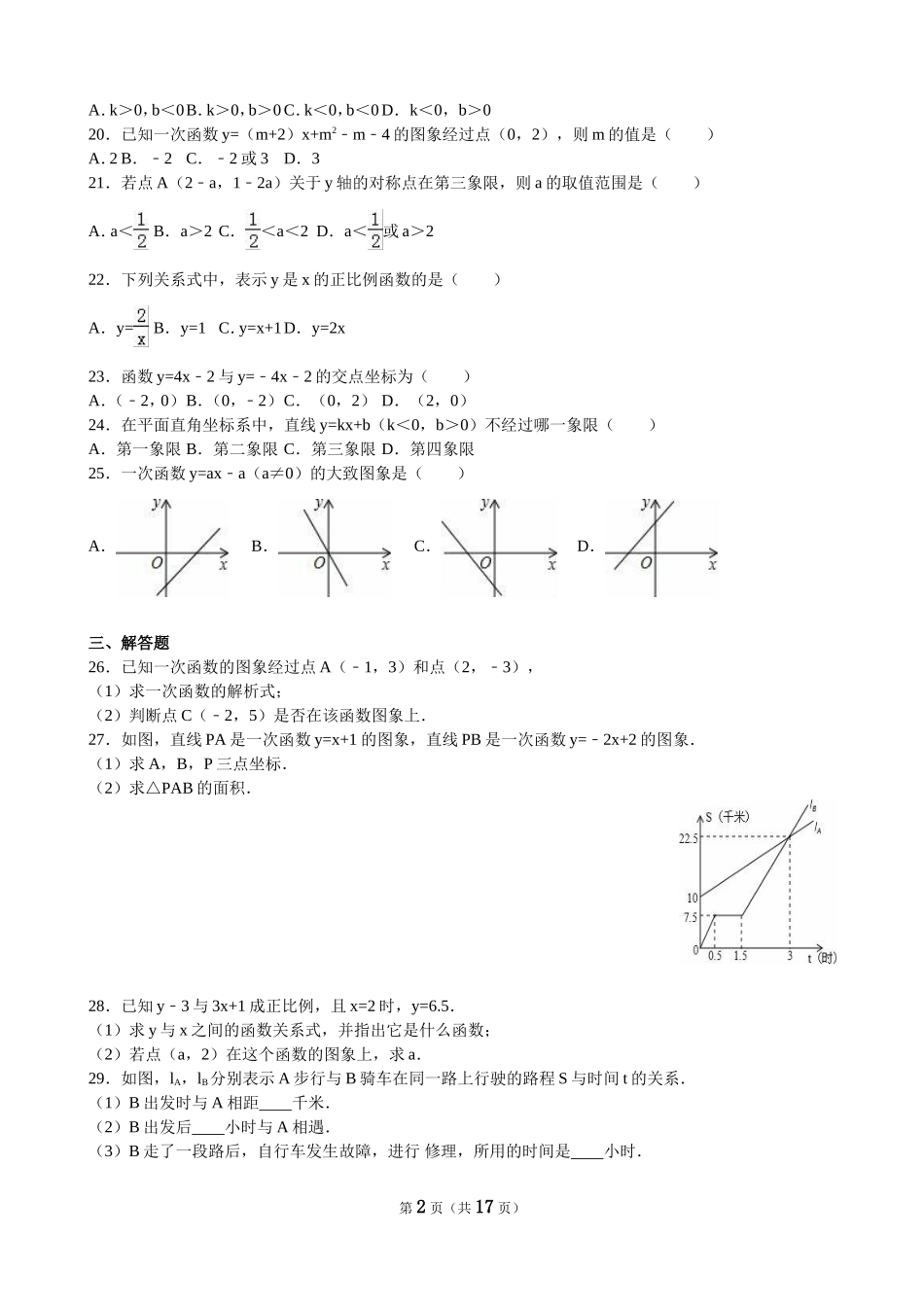 第12章一次函数一、填空题1.关于x轴对称的点的坐标为,关于y轴对称的点的坐标为,关于原点对称的坐标为.2.点B(﹣5,﹣2)到x轴的距离是,到y轴的距离是,到原点的距离是.3.以点(3,0)为圆心,半径为5的圆...