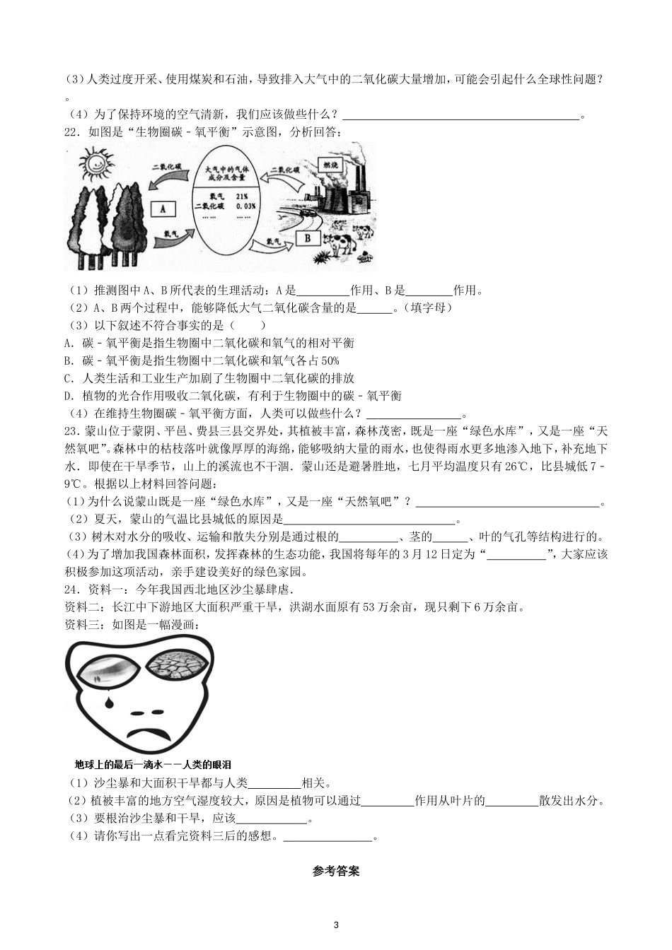 初中生物七年级上人教版单元检测2卷3.6爱护植被,绿化祖国.doc_第3页