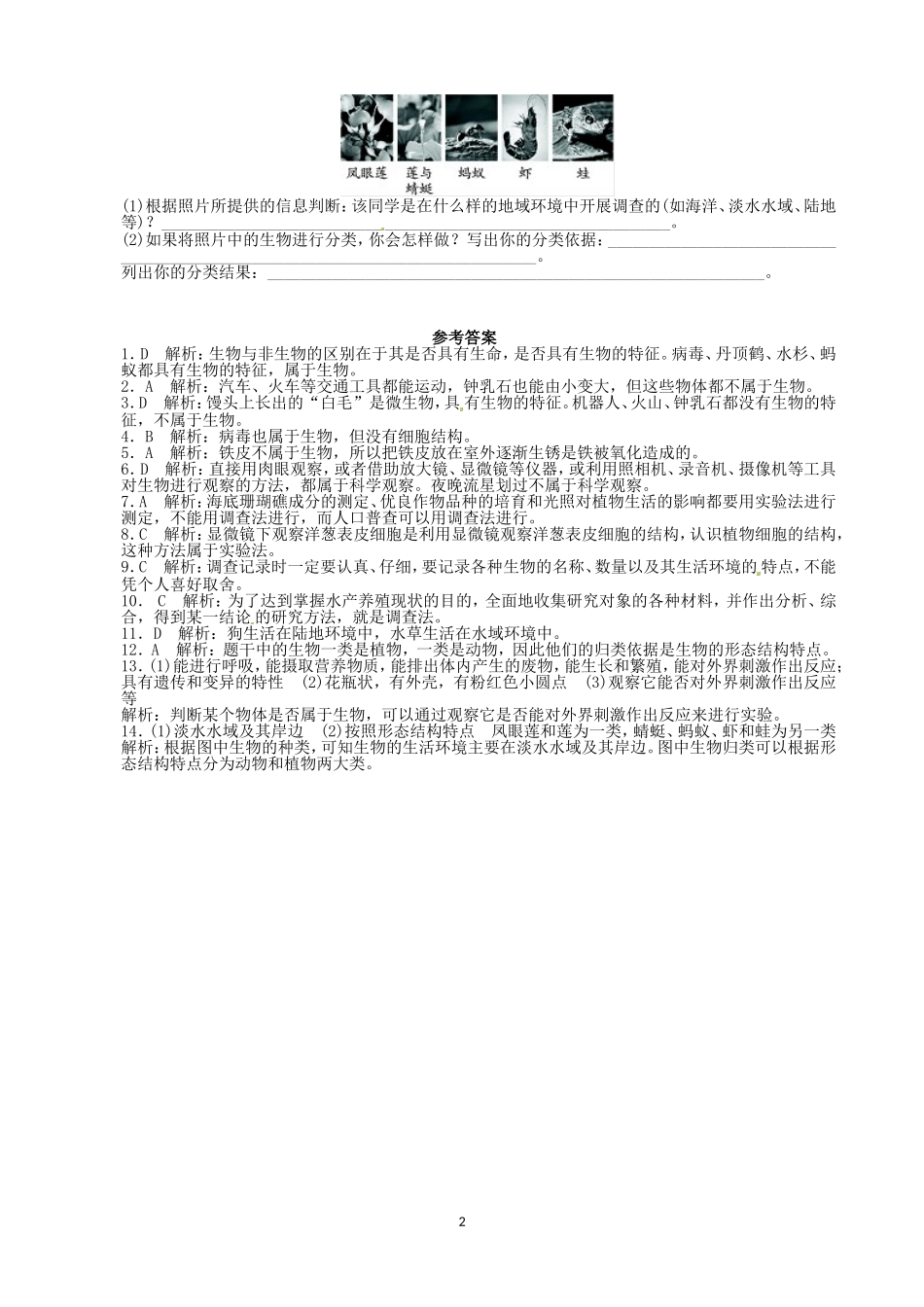 初中生物七年级上人教版单元检测卷1.1认识生物.doc_第2页