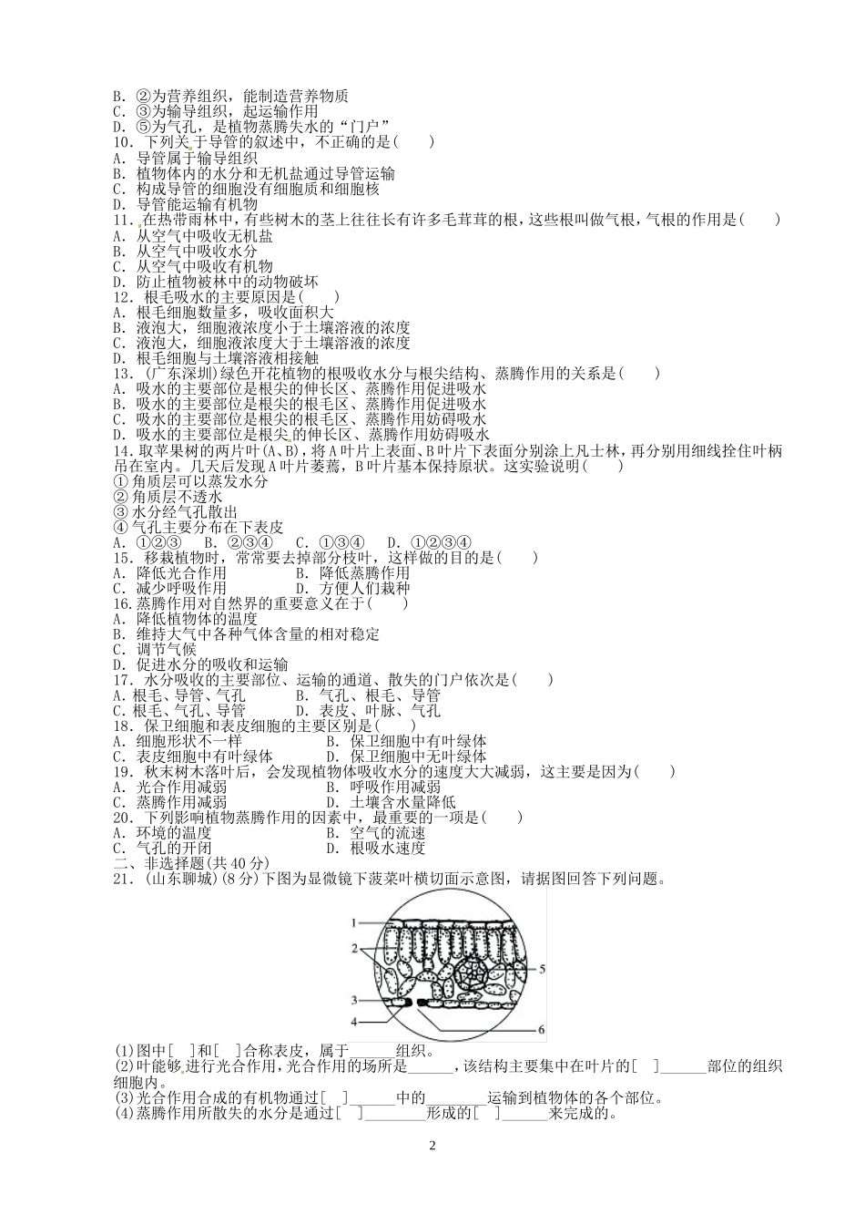 初中生物七年级上人教版单元检测卷3.3绿色植物与生物圈的水循环.doc_第2页