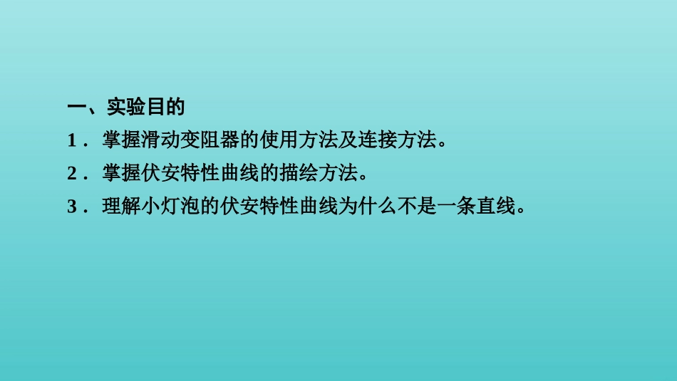 实验十一描绘小灯泡的伏安特性曲线1实验知识·自主回顾一、实验目的1.掌握滑动变阻器的使用方法及连接方法。2.掌握伏安特性曲线的描绘方法。3.理解小灯泡的伏安特性曲线为什么不是一条直线。二、实验原理根据...